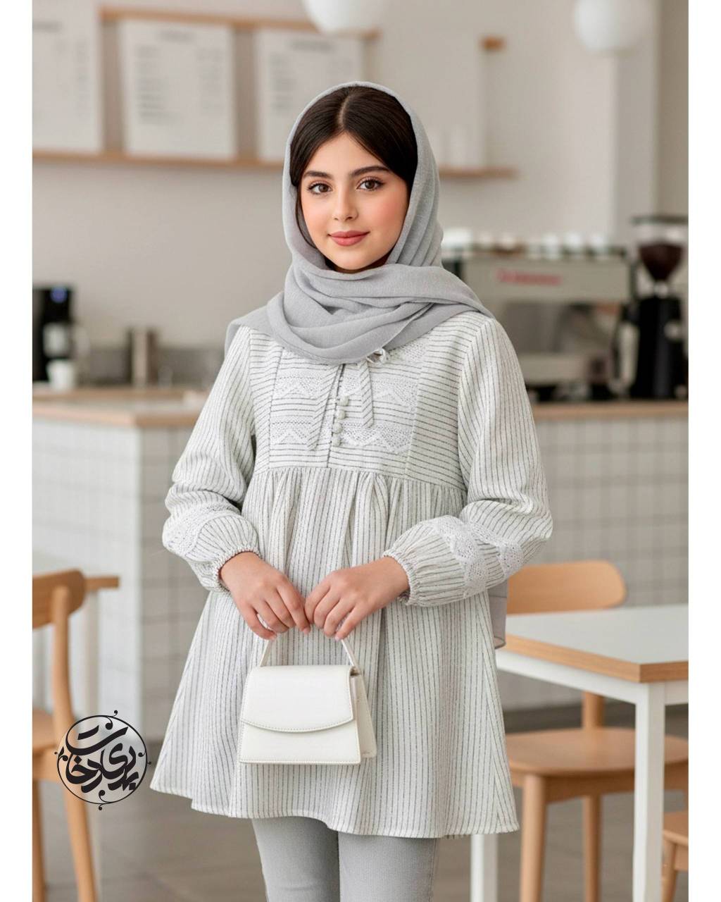 آرمیتا با جنس لنین ترک هست و طرح تور جلوی سینه پشت اون هم تکرار شده. این تونیک جذاب بسیار کاربرده بوده و مناسب همه جا هست .