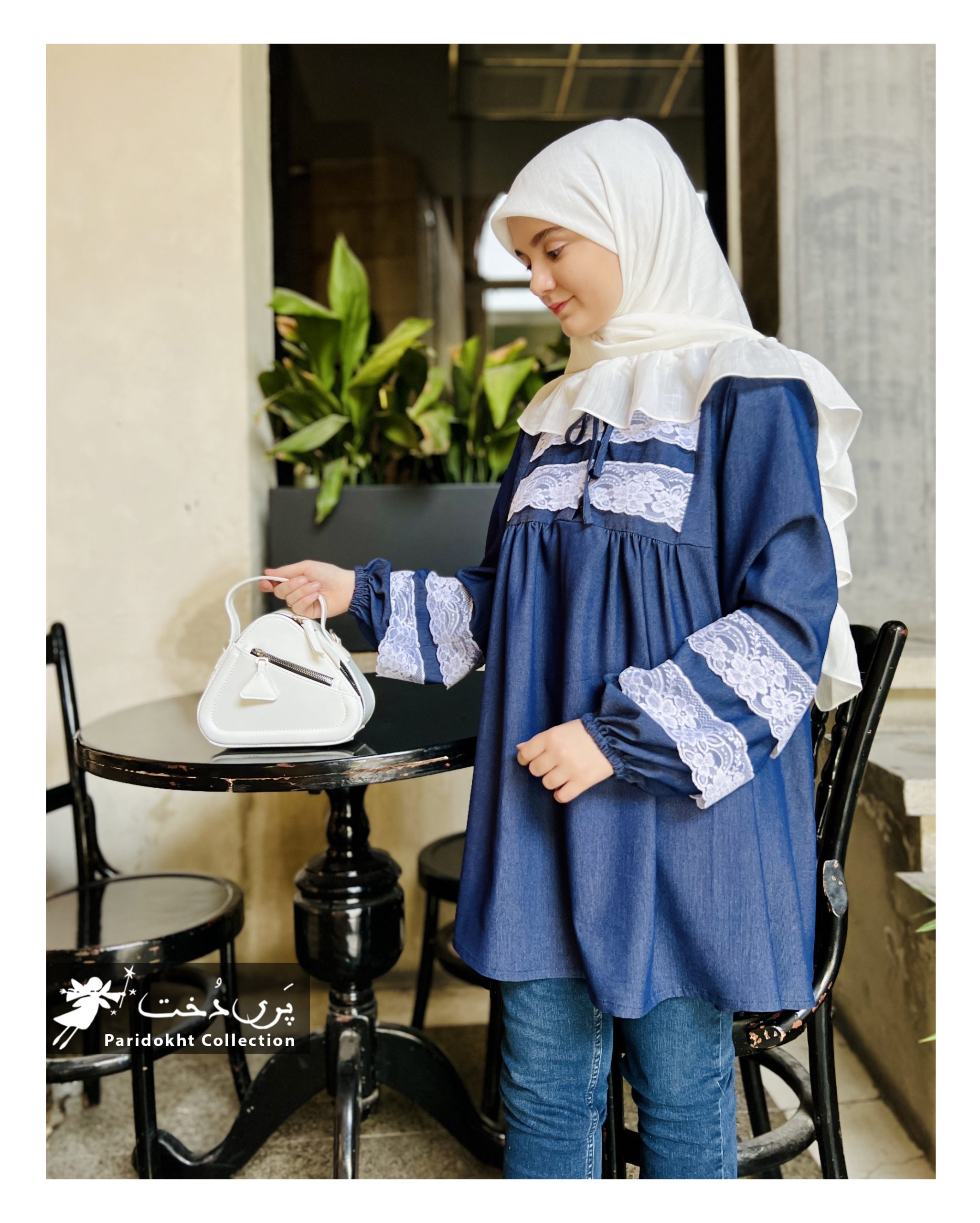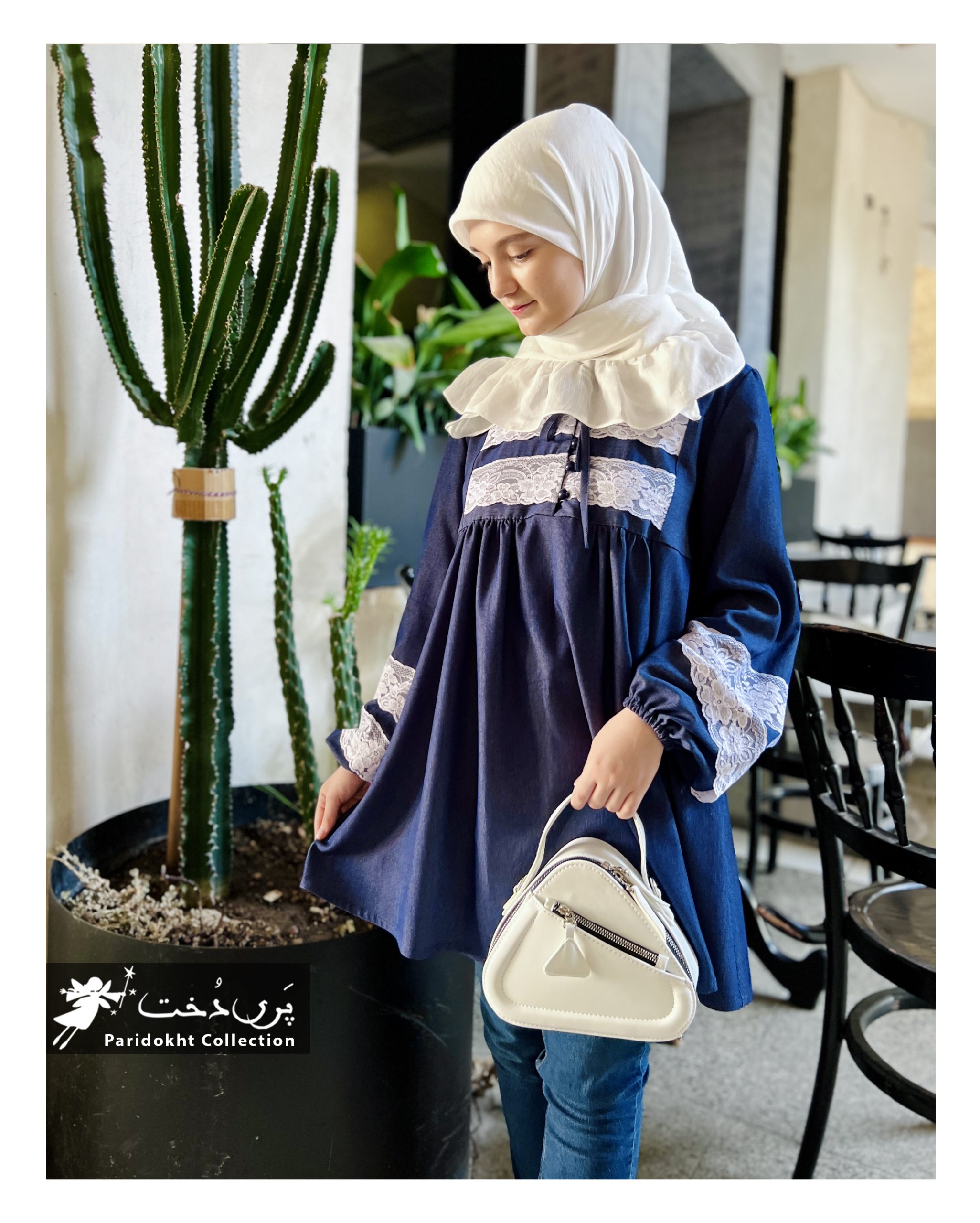 ترکیبش با یه شلوار جین و کتونی سفید که دیگه واقعا حرف نداره. حالا فکر کن روسری سفید دورچین پریدختی و کیف مثلث هم باهاش ست کنی که دیگه میشه استایل محشر