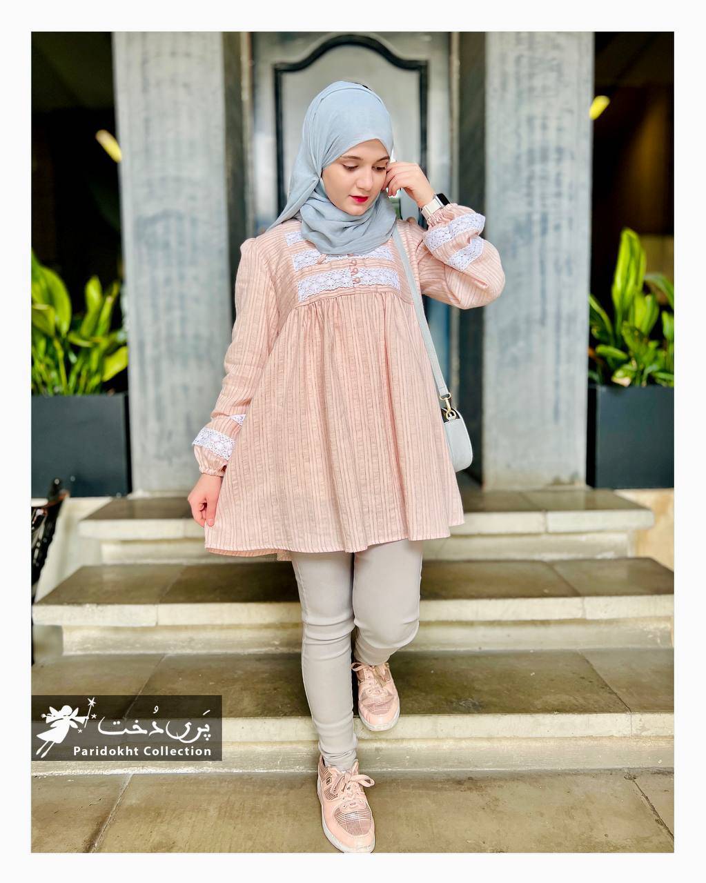 آرمیتا با جنس لنین ترک هست و طرح تور جلوی سینه پشت اون هم تکرار شده. این تونیک جذاب بسیار کاربرده بوده و مناسب همه جا هست .