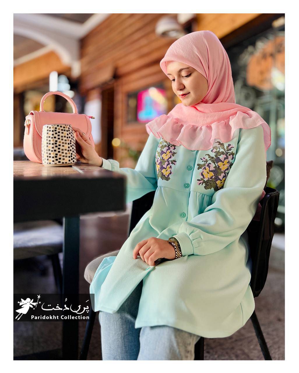 ( یه راهنمایی برای کسانی که اندازهها رو با یه نگاه میخوان بدونن. مانکن قدش ۱۵۸ هست و دور سینه ۸۷، سایز ۴ اریکا رو پوشیده. با توجه به جدول سایز که آخرین عکس این تصاویر هست، سایز مورد نظرتونو انتخاب کنید و تا دو سانت خطای اندازهگیری رو در نظر بگیرید)