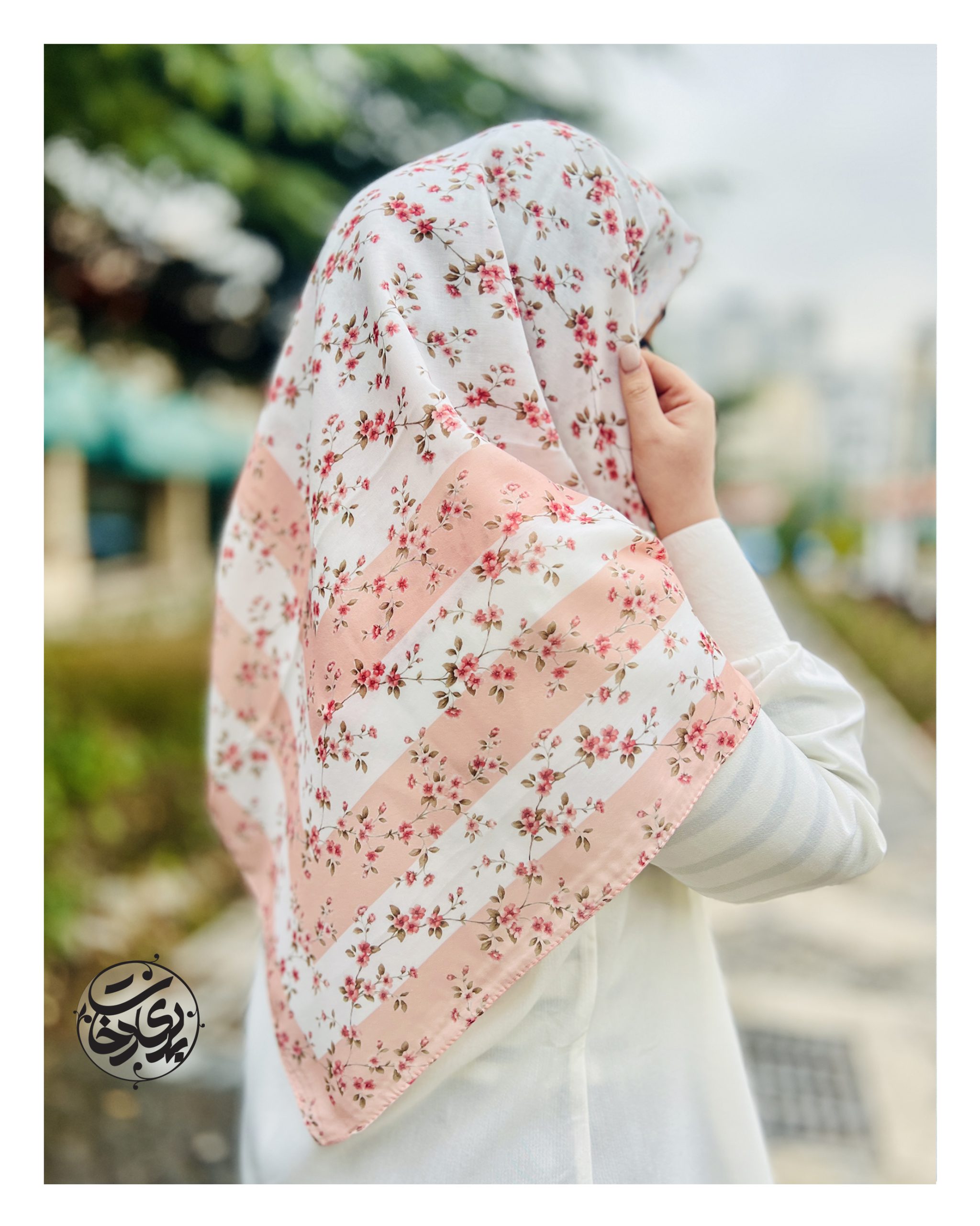 روسری سفید حاشیه گلبهی