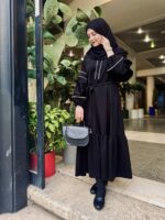 (این عبا به صورت فری سایز در ۳ سایز تولید شده. مانکن با دور سینه ۸۷ سایز ۴ پوشیده)