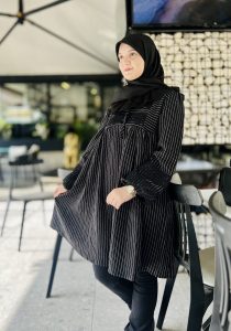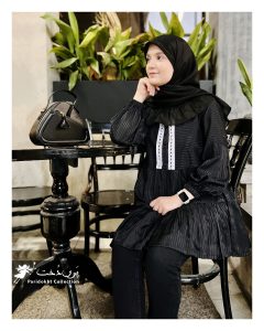 پشت تونیک زیپ داره که باعث میشه به راحتی پوشیده بشه و یقه بسته و آستین‌های بلندش پوشش مناسبی رو برای دخترای نازنین محجبه فراهم می‌کنه.