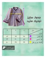 (برای اندازه گیری فاصله دو زیربغل را از روی لباسی که مناسبه مثل شومیز یا مانتو اندازه بزنید و با جدول سایز درج شده در تصاویر چک کنید)