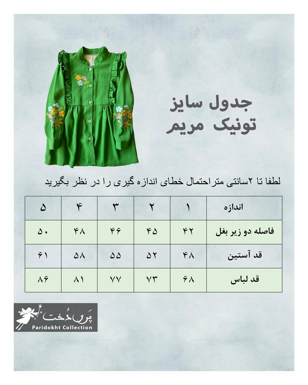 (برای اندازه گیری فاصله دو زیربغل را از روی لباسی که مناسبه مثل شومیز یا مانتو اندازه بزنید و با جدول سایز درج شده در تصاویر چک کنید)