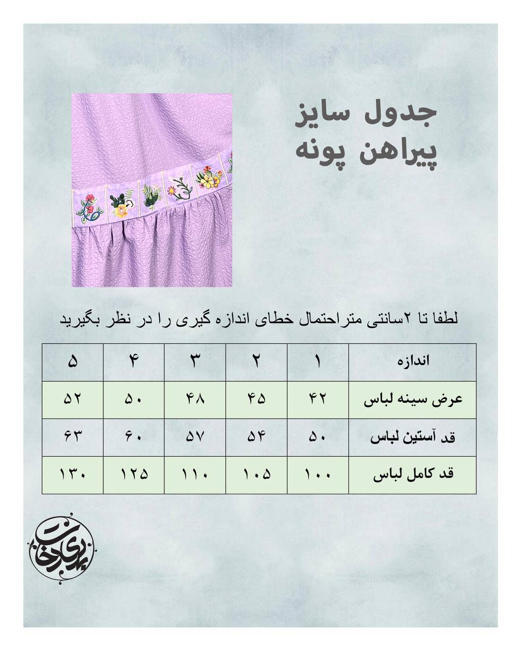 (برای اندازه گیری فاصله دو زیربغل را از روی لباسی که مناسبه مثل شومیز یا مانتو اندازه بزنید و با جدول سایز درج شده در تصاویر چک کنید)